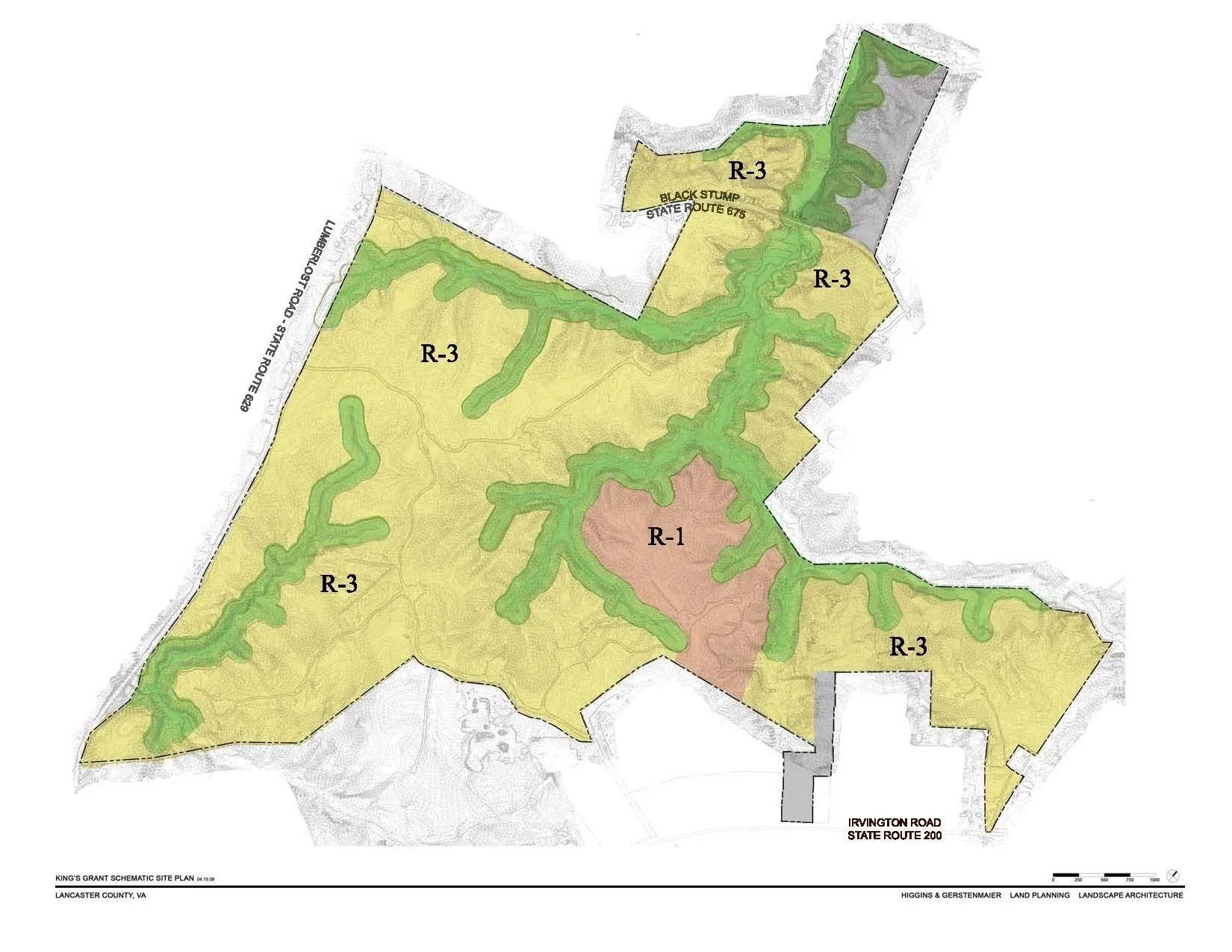 The single most important fact about King's Grant — and the one that most sharply differentiates it from any other waterfront offering on the Northern Neck — is that current by-right zoning permits 575 building sites. This is not a speculative yield, not a number contingent on rezoning, special-use permits, or comprehensive plan amendments, and not a figure that requires a public hearing to defend. It is the entitled development capacity of the land as it sits today.